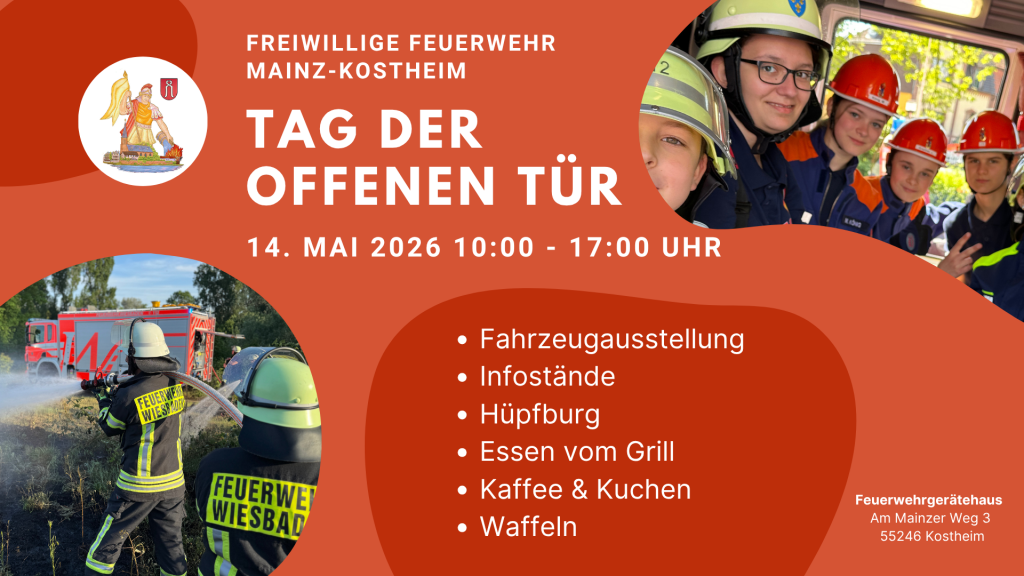 Alle Interessierten aus Nah und Fern sind herzlich eingeladen, am 14. Mai mit der Feuerwehr Kostheim einen erlebnisreichen Tag für die ganze Familie zu erleben.