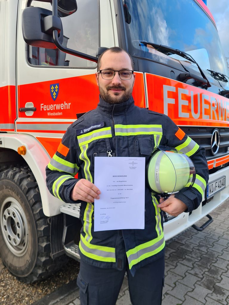 Mit Jan Bingenheimer hat die Einsatzabteilung der Kostheimer Feuerwehr seit vergangenem Wochenende personelle Verstärkung bekommen. An insgesamt fünf sehr intensiven Wochenenden wurden die vielfältigen Grundtätigkeiten eines aktiven Feuerwehrmannes inklusive eines erweiterten Erste Hilfe Teils im Rahmen des Grundlehrgangs den Teilnehmern vermittelt. Mit dem erfolgreichen absolvieren der Prüfung, dürfen die frisch ausgebildeten Feuerwehrfrauen und -männer nun aktiv in den Einsatzdienst.