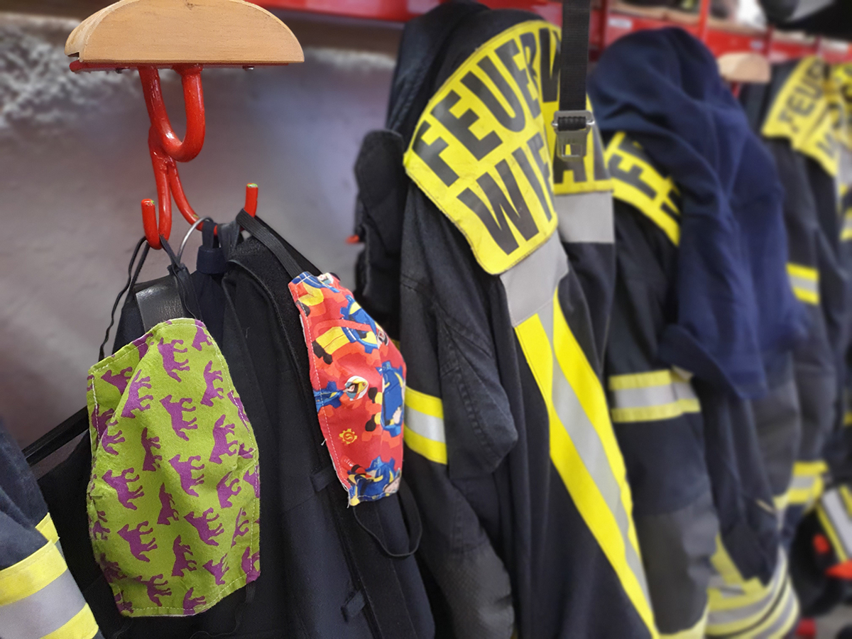 Da wir derzeit über keinerlei Einweg-Mundschutz verfügen und dieser gerade grundsätzlich auch nicht erhältlich ist, hat sich sehr spontan die Großmutter eines unserer Bambinis der Bambinifeuerwehr bereit erklärt, zu Stoff und Faden zu greifen und uns tollen Mundschutz für alle Einsatzkräfte zu nähen.