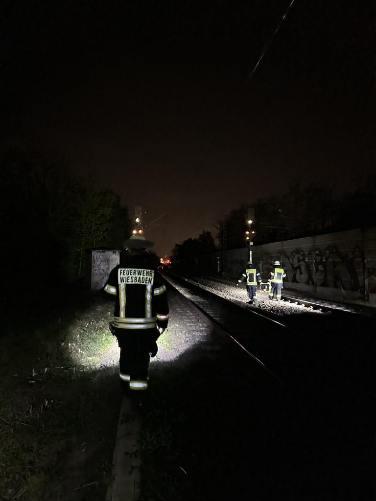 Noch während des vermeintlichen Verkehrsunfalls ereignete sich auf der Bahnstrecke zwischen Mainz-Kastel und Wiesbaden ein Paralleleinsatz, bei dem ein Lokführer nach einem vermeintlichen Zusammenstoß auf offener Strecke eine Notbremsung einleitete. Da davon ausgegangen werden musste, dass der Zug mit einer Person kollidiert war, fand eine umfangreiche Absuche der entsprechenden Gleisbereiche statt. Hierzu wurde neben Einheiten der Berufsfeuerwehr und des Rettungsdienstes auch die Kostheimer Feuerwehr beordert. Während die Besatzung eines Kostheimer Löschfahrzeuge die Kontrolle des betroffenen Gleisbereiches unterstützte, waren die restlichen Kameraden für die Evakuierung der auf offener Strecke stehenden S-Bahn eingesetzt. Knapp 200 Personen mussten in bereitgestellte Busse geleitet werden. Bei der Suche am Boden erhielten die Kräfte Unterstützung aus der Luft durch einen Hubschrauber mit angebrachter Wärmebildkamera. Nach diese Suche ergebnislos verlief, forderte der Einsatzleiter zusätzlich Flächensuchhunde an, um den Bereich hinter dem Zug erneut zu überprüfen. Auch hierbei unterstütze die Kostheimer Wehr die Hundeführer. Da auch diese Suche keine Ergebnisse brachte, wurde der Einsatz gegen 2:30 Uhr in der Nacht ergebnislos abgebrochen.