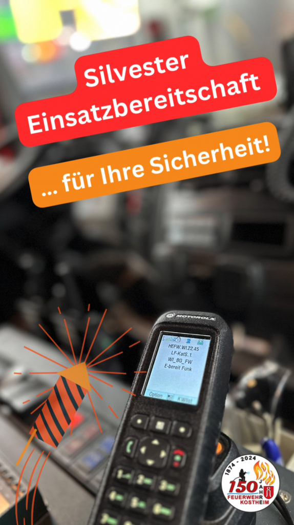 Am letzten Abend des Jahres trafen sich einige Kameradinnen und Kameraden der Kostheimer Wehr – teils mit ihren Partnern und Kindern – im Feuerwehrgerätehaus , um in geselliger Runde das Jahr ausklingen zu lassen. Da man genügend Kräfte vor Ort hatte, um ein Löschfahrzeug im Bedarfsfall direkt zu besetzen, gab man bei der Abfrage der Einsatzplanung im Vorfeld die positive Rückmeldung über die Einsatzbereitschaft an dem Abend.