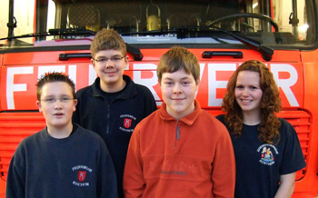 Von den Anwesenden Jugendfeuerwehrmitgliedern wurden Svenja Arenz (r.) und Tobias Heinz (l.) zu den Jugendgruppensprechern gewählt. Fabian Wotzlaw (2.v.l.) übernimmt das Amt des Kassenwartes und Daniel Schuth (2.v.r.) darf sich fortan Schriftführer nennen. Zusammen mit dem Jugendwart, der auch der fünfjährigen Amtszeit unterliegt, bilden sie den neuen Jugendfeuerwehrausschuss, der im Jahr 2010 die Geschicke der Nachwuchsabteilung lenken wird.