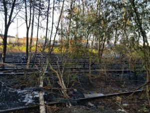 Umgehend wurden neben der Alarmgruppe der Wehren aus Kostheim und Kastel auch der Löschzug der Berufsfeuerwehr alarmiert. Auf der Anfahrt zur Einsatzstelle konnten die Einsatzkräfte die gemeldete Rauchentwicklung schon bestätigen, mussten aber noch eine geeignete Zufahrt zur Brandstelle ausfindig machen. Als Bereitstellungsraum diente der große Parkplatz auf der Rückseite des Bahnhofs. Das Feuer – es brannten etwa 1000 Quadratmeter Unterholz, Gestrüpp sowie Unrat – loderte auf einer schwer zugänglichen Fläche des ehemaligen Güterbahnhofes zwischen Bahnlinie und des Rheinseitenarms. Da Anfangs eine ausreichende Wasserversorgung noch nicht gesichert war, beorderte der Einsatzleiter vorsorglich die beiden neuen Tanklöschfahrzeuge sowie das Großtanklöschfahrzeug an die Einsatzstelle.