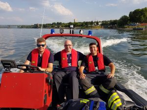Somit konnten alle auf der Anfahrt befindlichen Wiesbadener Kräfte die Rückfahrt wieder antreten. Die Kostheimer Kameraden traten ebenfalls bei sommerlichen Temperaturen und strahlendem Sonnenschein wieder die Heimfahrt zur Rampe in Gustavsburg an.