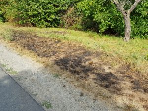Spaziergänger entdeckten in der Nacht auf Sonntag einen Grasflächenbrand im Bereich der Krautgartenschule und verständigten die Feuerwehr. Umgehend wurden das Löschfahrzeug der Feuerwehr Kostheim sowie das Löschfahrzeug samt Tanklöschfahrzeug der Feuerwache 2 alarmiert. Da die Kollegen der Berufsfeuerwehr kurz vor der FF in die Steinern Straße einbogen und somit zuerst an der Einsatzstelle eintrafen, übernahmen sie auch die Löscharbeiten mit einem Strahlrohr. Es brannte auf einer Fläche von etwa 20 Quadratmetern. Dem rechtzeitigen Bemerken des Feuers ist es zu verdanken, dass kein größerer Schaden entstand – rund um die Brandstelle befindet sich eine völlig ausgetrocknete „Grünlandschaft“ mit mehreren kleinen Bäumchen, die direkt an die Wohnbebauung der Römerstraße angrenzt.
