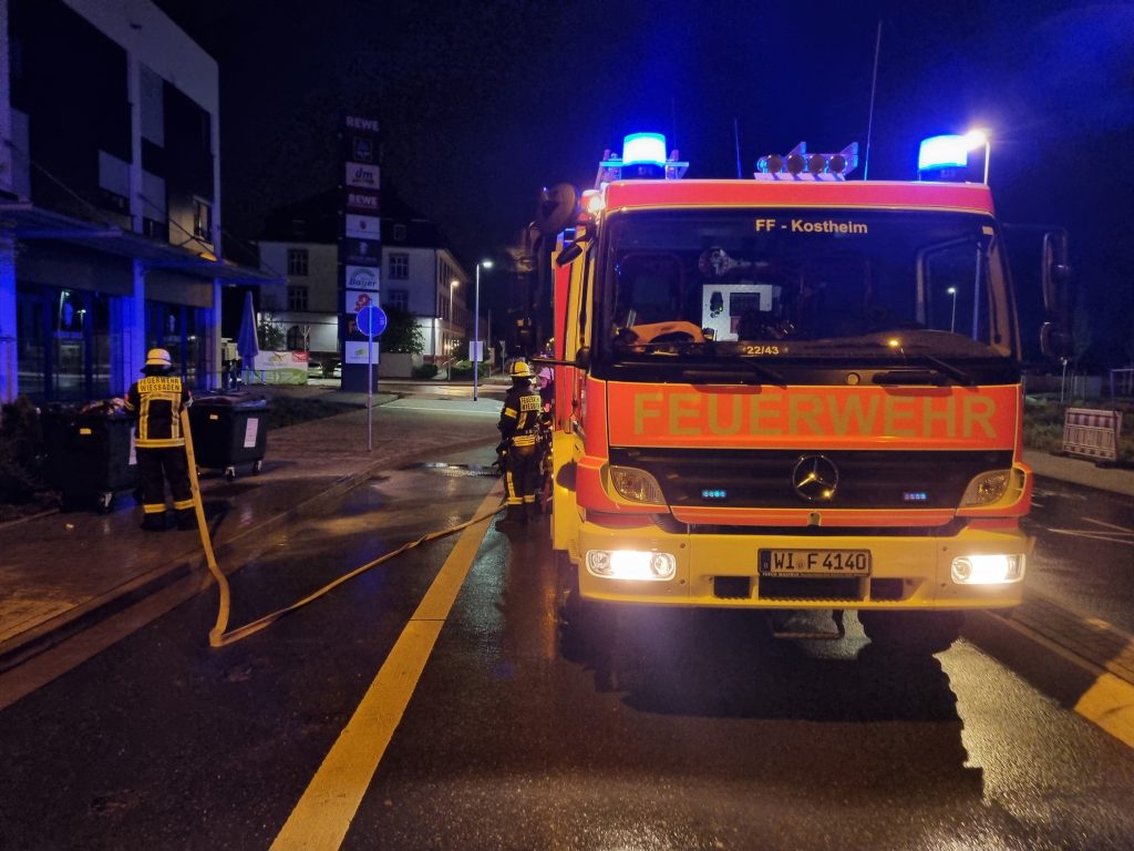 Am Dienstag wurde die Feuerwehr Kostheim in den frühen Morgenstunden zu einem von der Polizei gemeldeten Mülltonnenbrand alarmiert. Als das Löschfahrzeug kurze Zeit später an der Einsatzstelle in der Kostheimer Landstraße eintraf, hatte die schon eingetroffene Polizeistreife das Feuer in der Großraummülltonne mit einem Feuerlöscher weitestgehend gelöscht. Die Kostheimer Kameraden übernahmen mit einem Strahlrohr die Nachlöscharbeiten. Die ebenfalls alarmierten hauptamtlichen Kollegen der Feuerwache 2 mussten nicht unterstützend tätig werden und rückten wieder ein.