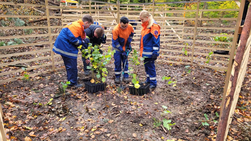 Nach einem gemeinsamen Frühstück, das durch die Logistikgruppe vorbereitet wurde, wurden die Teilnehmerinnen und Teilnehmer in sechs Pflanzgebiete aufgeteilt. Gemeinsam mit den Feuerwehren aus Kastel und Sonnenberg war die Jugendfeuerwehr Kostheim einem Pflanzgebiet am Neroberg zugeteilt und pflanzte dort rund 250 Bäumchen – Esskastanien und Winterlinden.