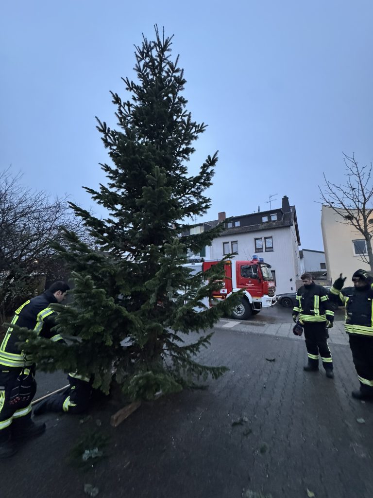 … so lautet nicht nur ein sehr bekanntes Weihnachtslied, sondern alle Jahre wieder werden die Weihnachtsbäume am Bürgerhaus sowie am Weinstand durch die Einsatzabteilung der Kostheimer Feuerwehr aufgestellt.