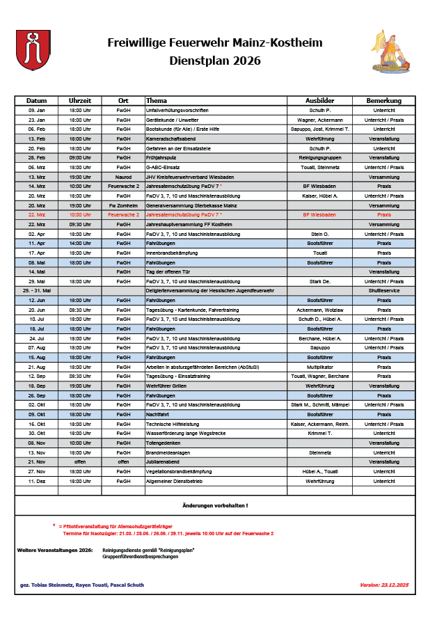 Nachfolgend kann der Dienstplan unserer Einsatzabteilung im PDF-Format heruntergeladen werden: